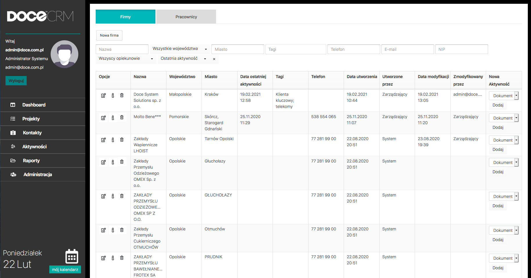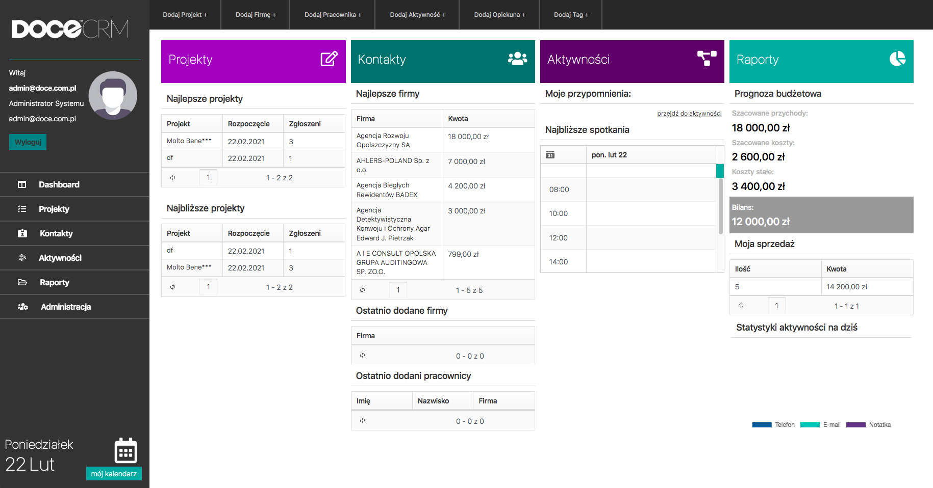 DOCE CRM to dedykowane narzędzie dla firm, które wspiera kompleksowo zarządzanie zaplanowanymi zadaniami.