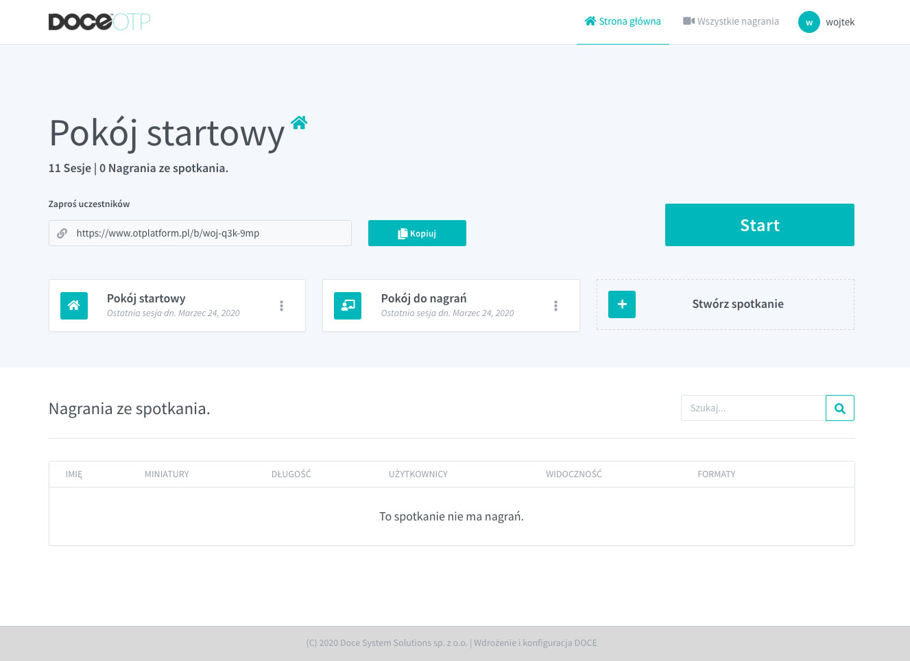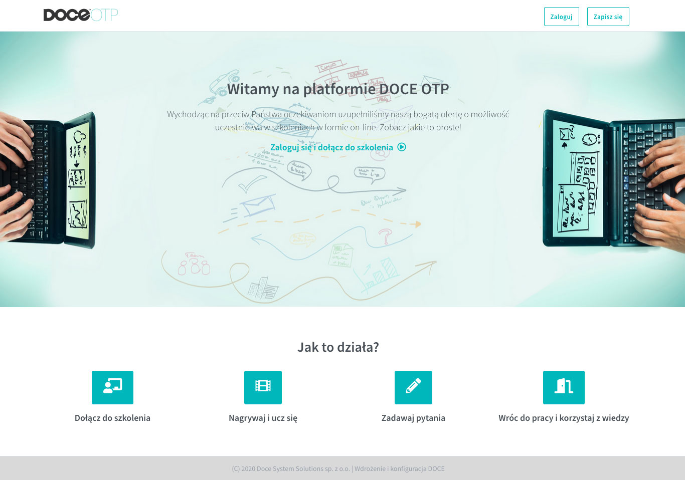 Platforma stworzona w celu przeprowadzania spotkań, to narzędzie służące do grupowego łączenia się z pracownikami oraz klientami w sposób zdalny. DOCE OTP działa na zasadzie współdzielenia ekranu przez uczestników spotkania. Taki interfejs pozwala na szybką i sprawną pracę zarówno uczestnikom spotkania, jak i osobie prowadzącej. Zalogowani użytkownicy mogą nie tylko udostępniać pliki, ale również korzystać ze wspólnej tablicy oraz czatu. Jedyna taka platforma do spotkań online, którą można spersonalizować zgodnie z wymaganiami i wizerunkiem firmy. Ta łatwa w obsłudze platforma, to narzędzie, które w czasie rzeczywistym pozwala na odbycie spotkań online z udziałem nieograniczonej ilości uczestników. Po-spotkaniowe możliwości raportowania dają feedback, niezbędny do ciągłej poprawy jakości przeprowadzanych meetingów, wpływających na komunikację i przepływ informacji wśród pracowników, a tym samym wpływających na efektywność funkcjonowania firmy.